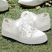 More information about Women's Lace Wedding Sneakers with Ribbon Laces - White Bridal Flat Shoes for Comfort and Style