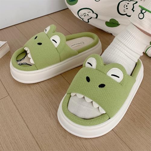 Cute Crocodile Linen Slippers- Thick Sole Soft Indoor Outdoor Slippers for Women/Men, Cute Slippers Cartoon Animal Womens Mens House Shoes Cotton Linen Comfortable Bedroom Kawaii Cloud Slides 6