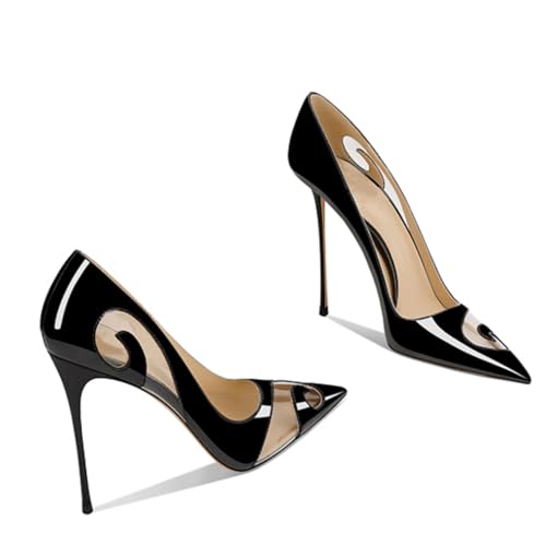 • Design:Stand out from the crowd with a one-of-a-kind swirl cutout design combining sleek patent leather and see-through PVC panels for a daring yet elegant look.eekends.