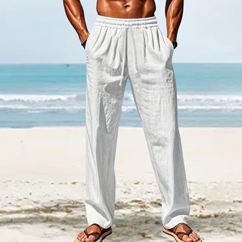 HOT ! Mens Linen Pants for Man Ruched Straight Leg Plain Long Leg Fall Summer 2025 Fashion Y2K