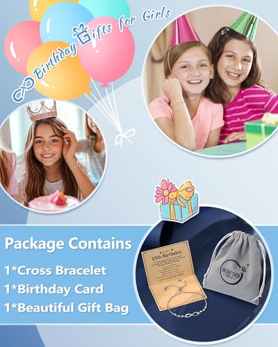UNGENT THEM Infinity CZ Cross Bracelet, 10th 11th 12th 13th 14th 16th 18th Birthday Gift 5th 8th Graduation Christian Confirmation Gifts Ideas 5