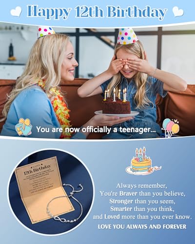• 【Happy 12th Birthday Bracelet】-- Perfectly designed, infinite charm symbolizes the power of eternal love and faith. Give this bracelet to celebrate her 12th birthday, inspire her and give her strength to face challenges.
