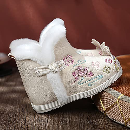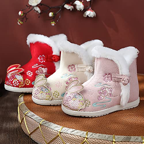 Girls Winter Boots Kids Toddler Chinese Traditional Fleece Lined Boots Cute Floral Embroidered Princess Boot Shoes 4