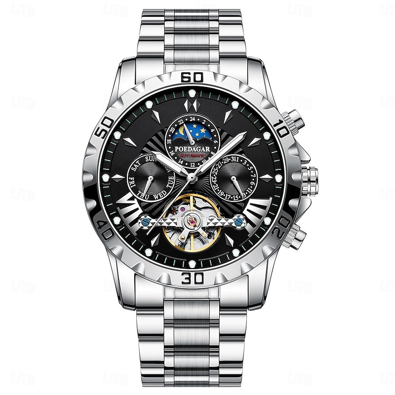 $48.99 - POEDAGAR Men Mechanical Watch Fashion Casual Wristwatch Automatic Self-winding Moon phase Luminous Waterproof Steel Watch 2025. Shop for cheap Mechanical Watches online? Buy at lightinthebox.com on sale today!