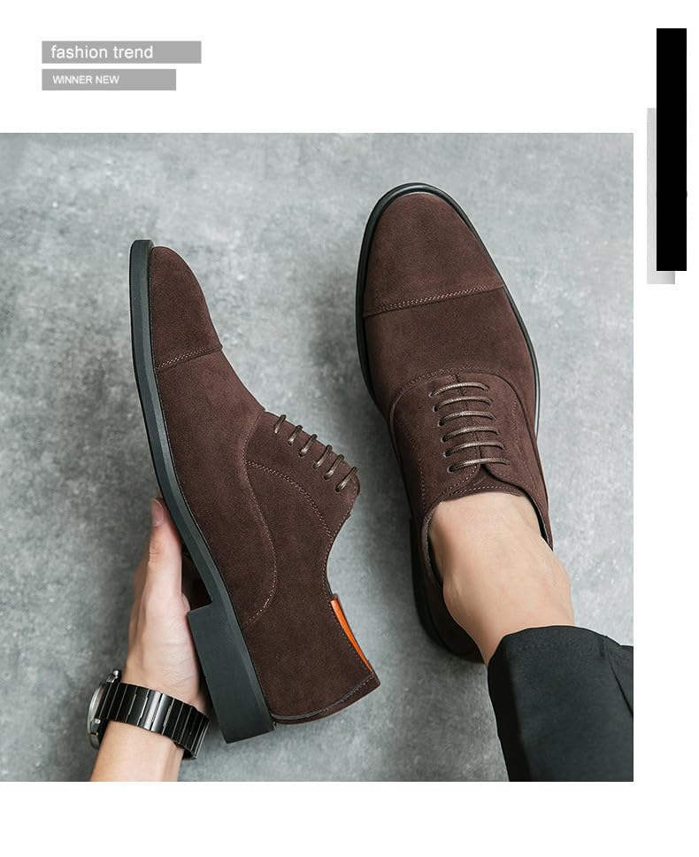 Santimon Men's Suede Oxford Dress Shoes Modern Cap Toe Lace-Up Derby Shoe for Business, Weddings & Formal Events 6
