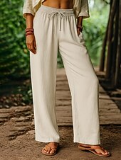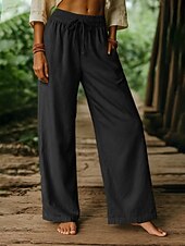 More information about Women's Harem Pants Vacation Vintage Ethnic Style Full Length High Waist Plain Comfy Breathability Soft Micro-elastic Formal Vacation Street Black White Khaki Beige Summer Spring Loose Fit
