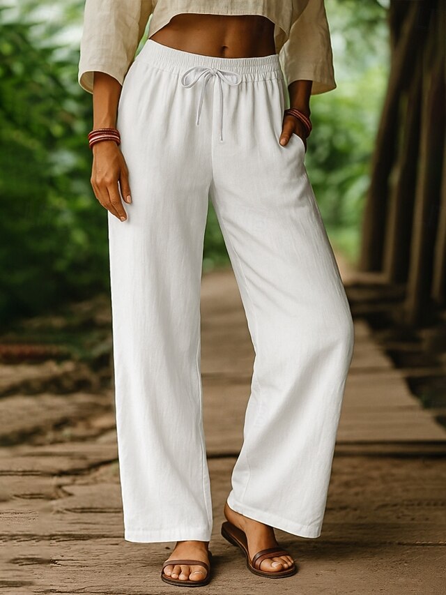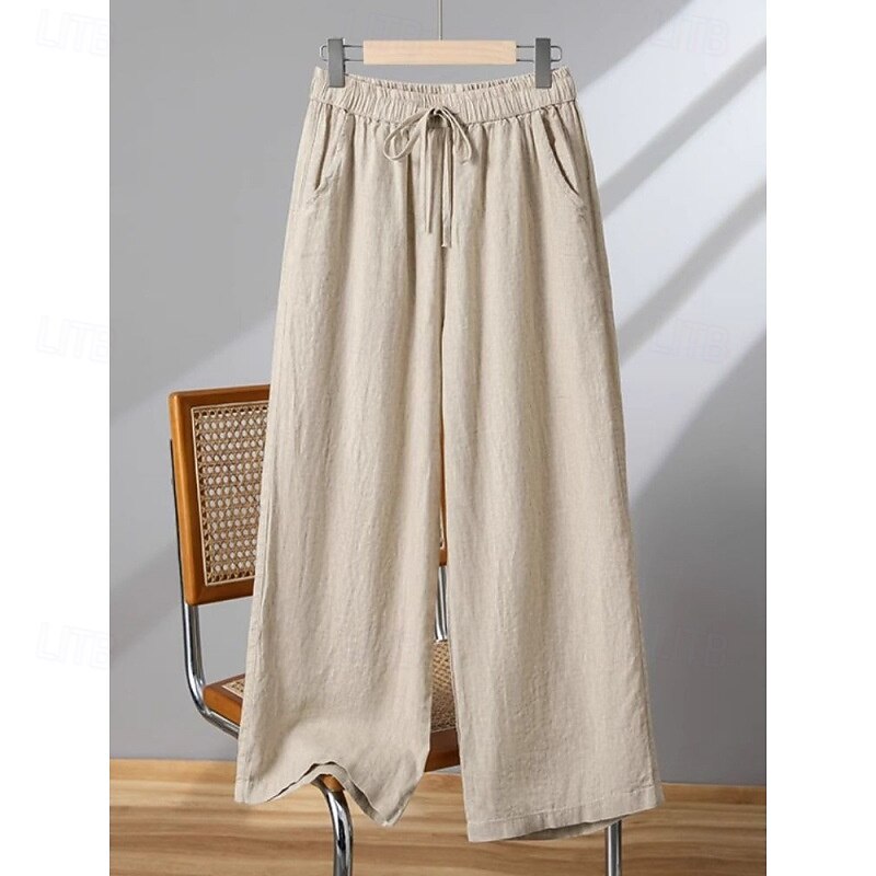 HOT ! Women's Harem Pants Vacation Vintage Ethnic Style Full Length High Waist Plain Comfy Breathability Soft Micro-elastic Formal Vacation Street Black White Khaki Beige Summer Spring Loose Fit
