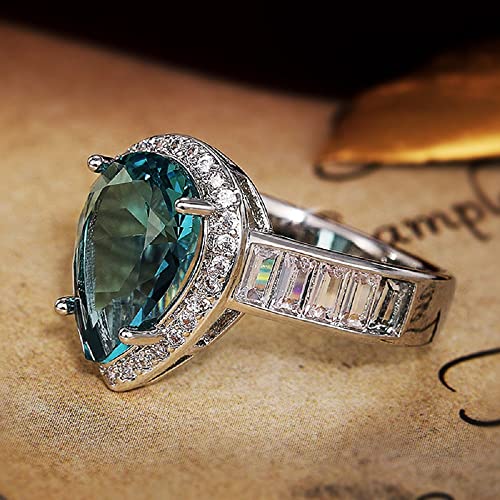 Fashion Waterdrop Pear Shape Cut Aquamarine Gemstone & Baguette CZ Zircon Promise Rings, Bridal Eternity Engagement Wedding Jewelry 7
