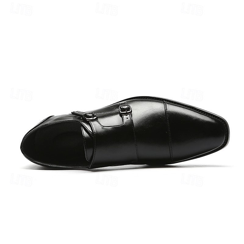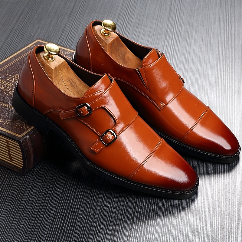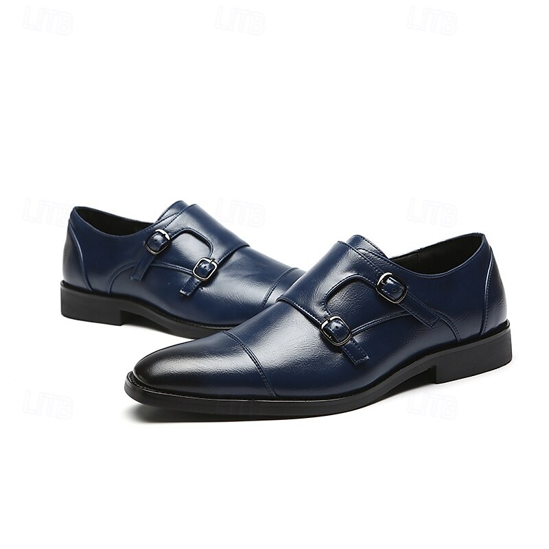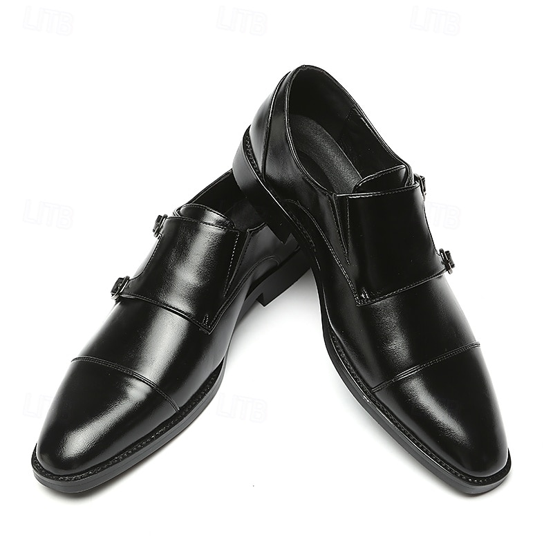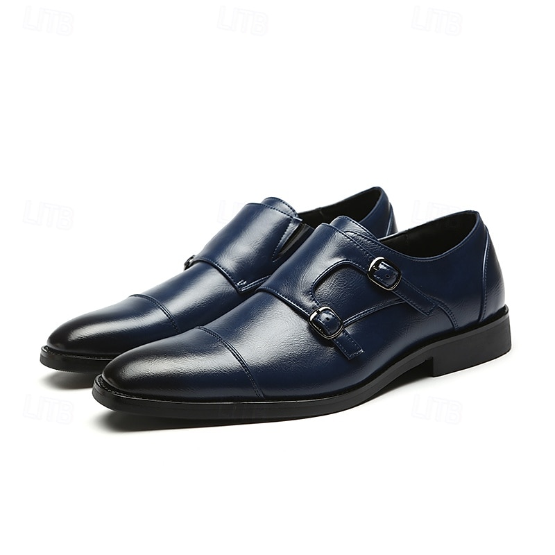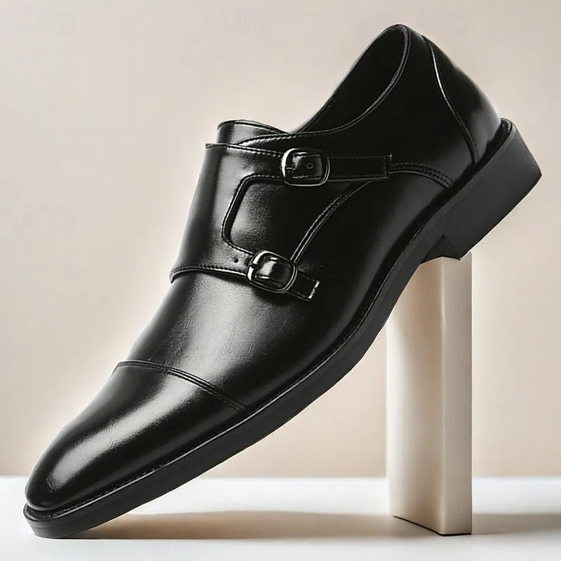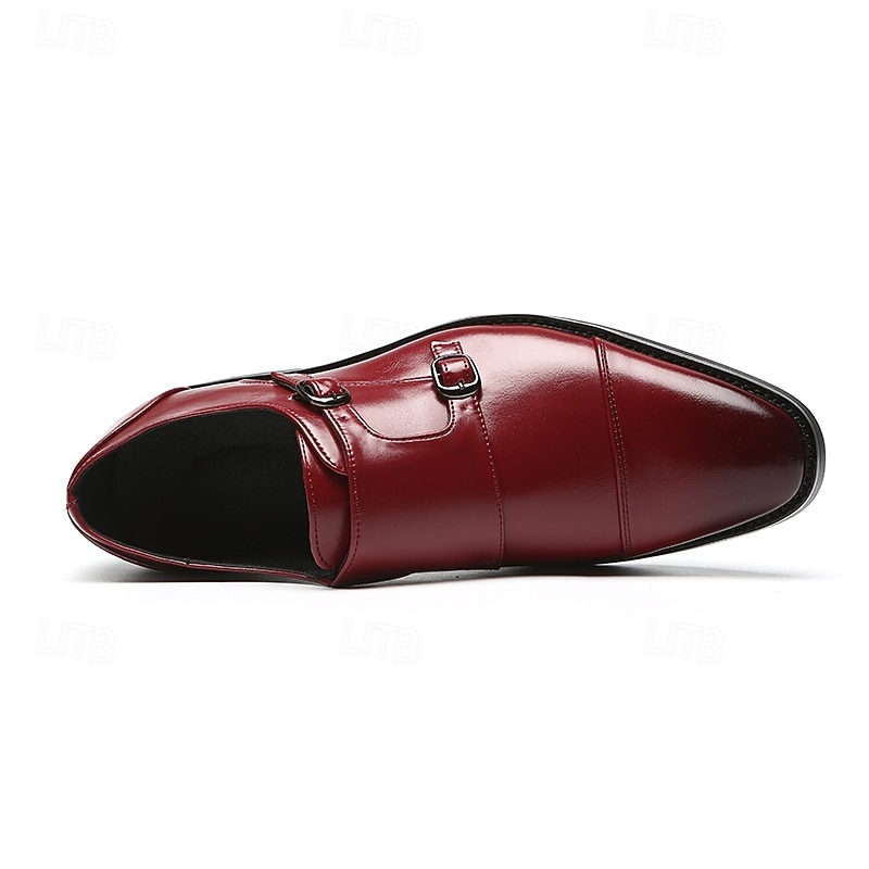 HOT ! Men's Burgundy Double Monk Strap Faux Leather Shoes - Elegant Slip-On Dress Shoes for Weddings & Formal Occasions