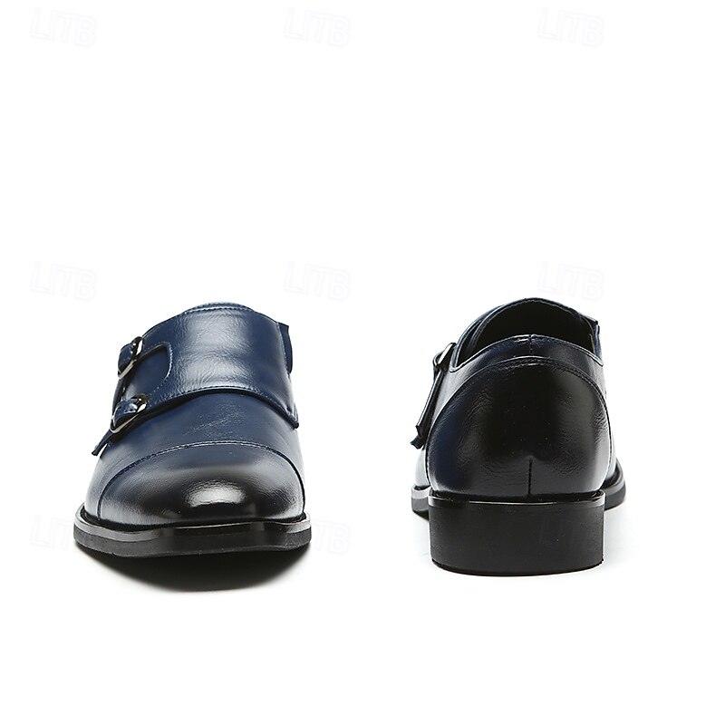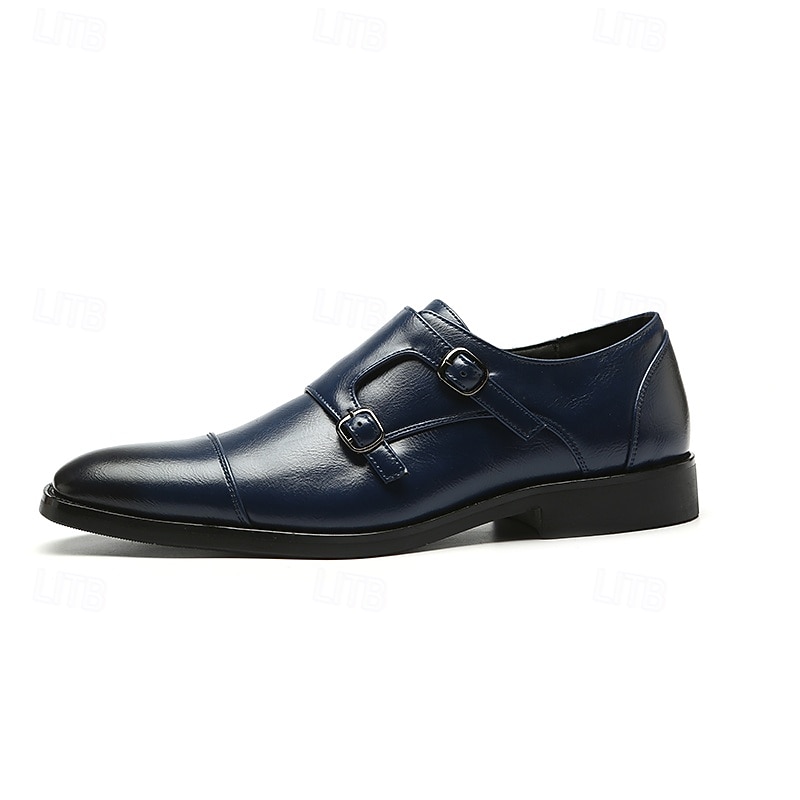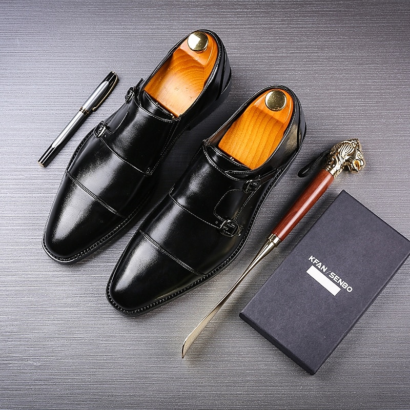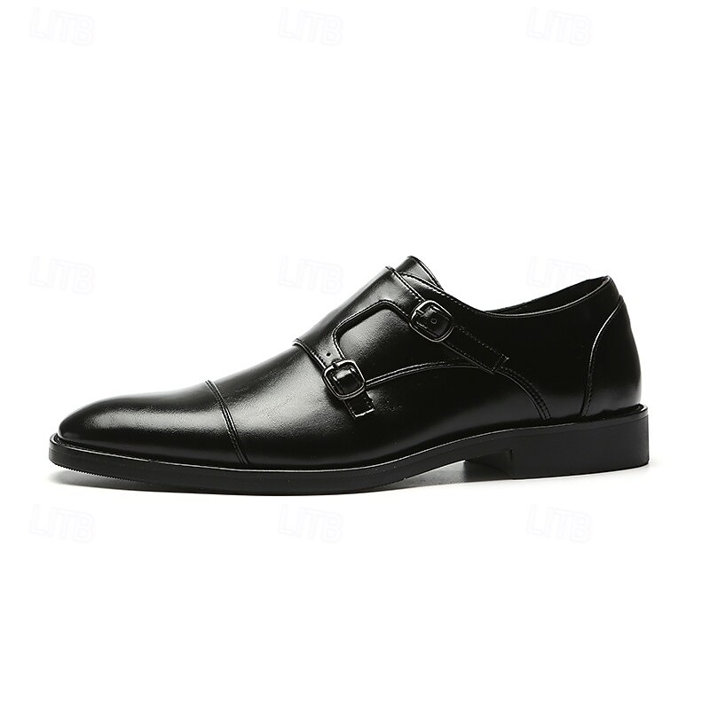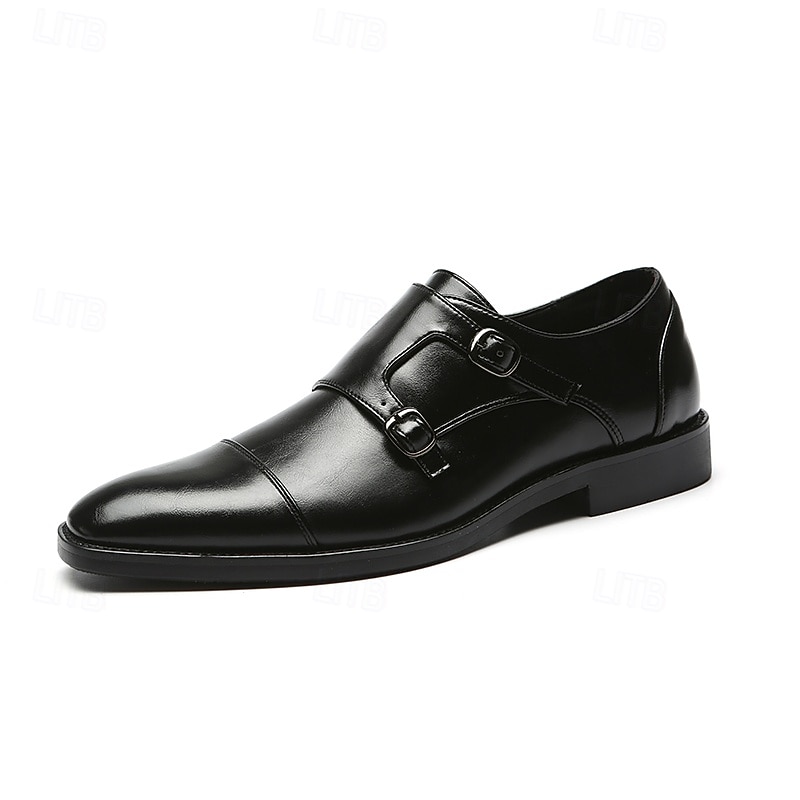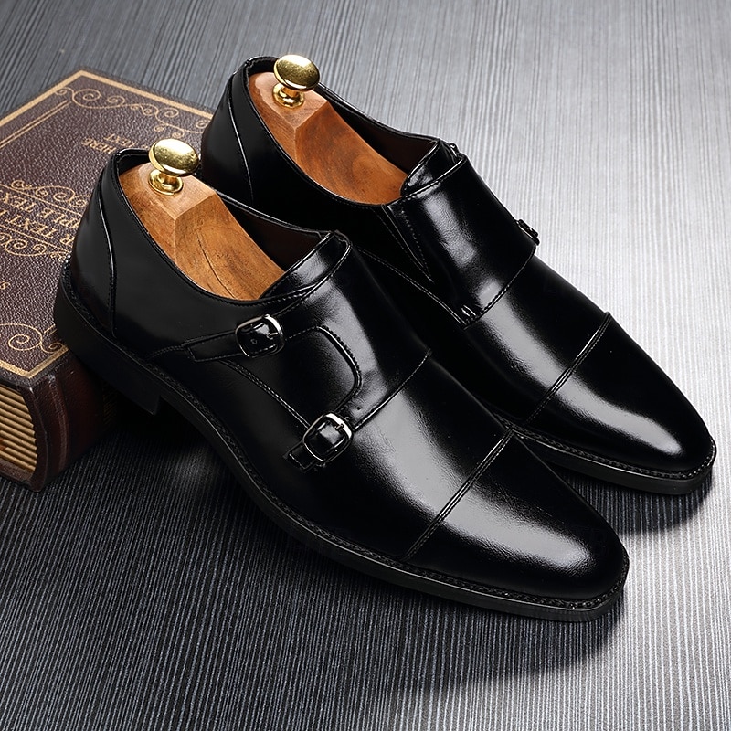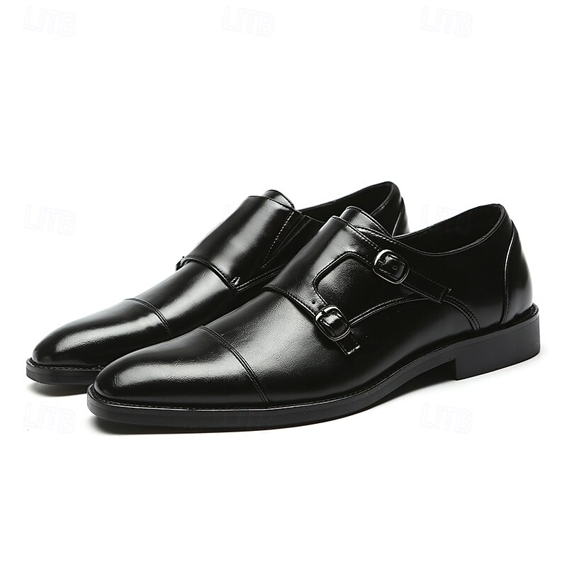 HOT ! Men's Burgundy Double Monk Strap Faux Leather Shoes - Elegant Slip-On Dress Shoes for Weddings & Formal Occasions