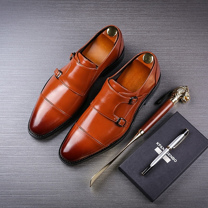 Men's Burgundy Double Monk Strap Faux Leather Shoes - Elegant Slip-On Dress Shoes for Weddings & Formal Occasions 24