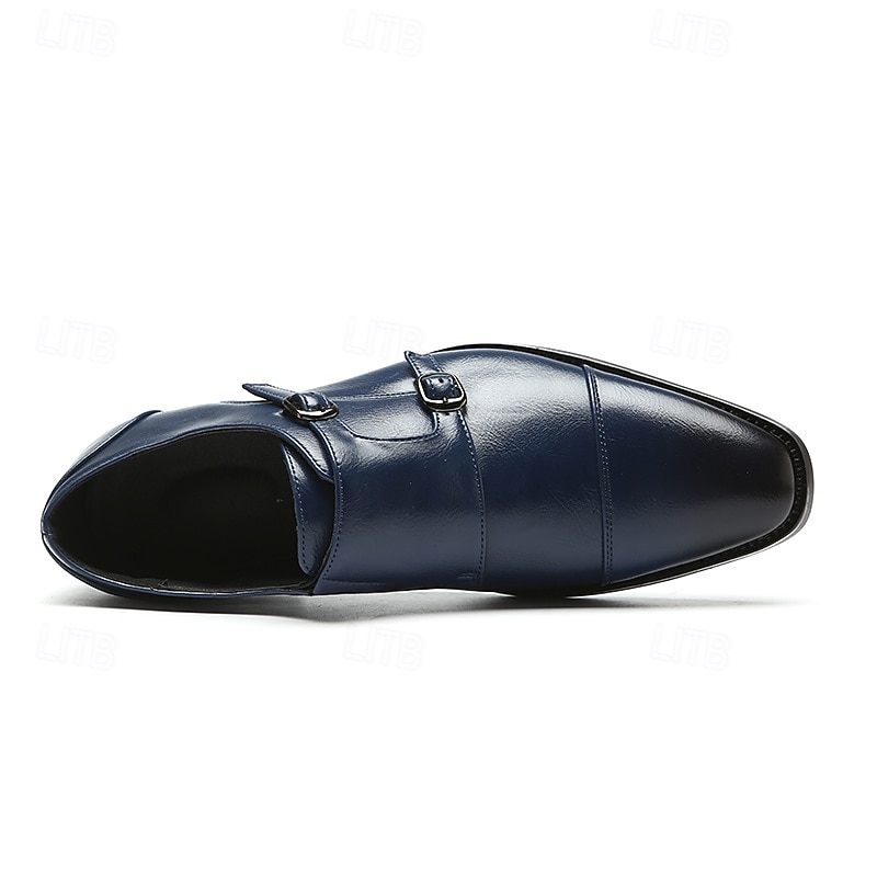 More information about Men's Burgundy Double Monk Strap Faux Leather Shoes - Elegant Slip-On Dress Shoes for Weddings & Formal Occasions