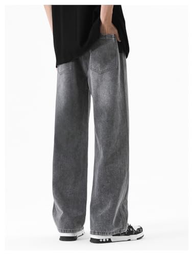 Jeans Pants Trousers Denim Spring Summer Men's Drawstring Style Hong Kong Loose Straight Versatile Retro Washed Floor Length 3
