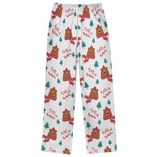 Boy's Lounge Pants Funny Cartoon Bear Head Scarf Kids Jogger Pants Elastic Waist Long Bottoms with Pocket 6-14 Years 7