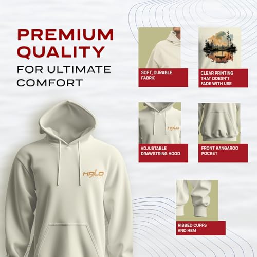 • Gear Up & Live the Adventure: Proudly wear your passion with these graphic hoodies for men & women by Halo Fishing, a brand under American Baitworks Co., renowned for innovation and enhancing every angler’s fishing experience.