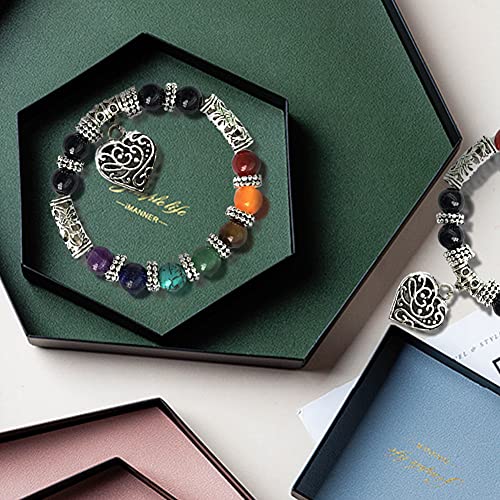 • Chakra Bracelet For Women Handmade Stretch 7 Chakra Semi-preciouse Gemstones Beads Yoga Reiki Heart Charm Bracelet
