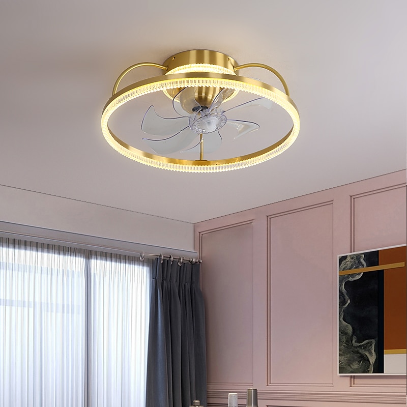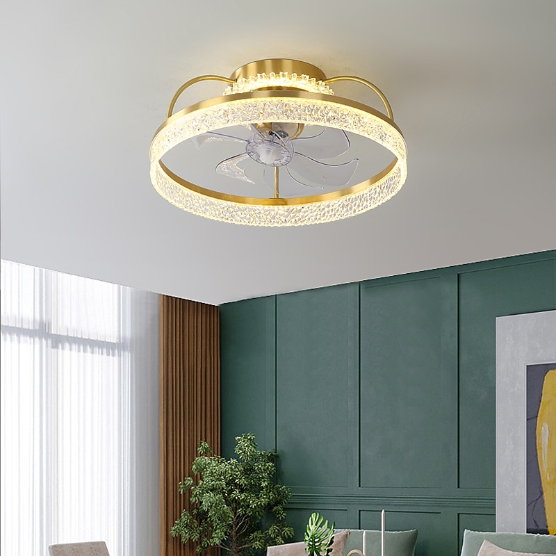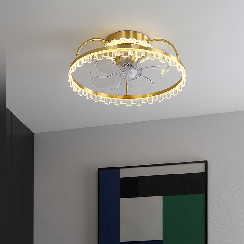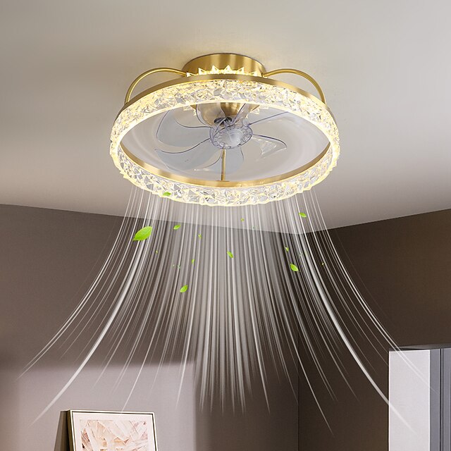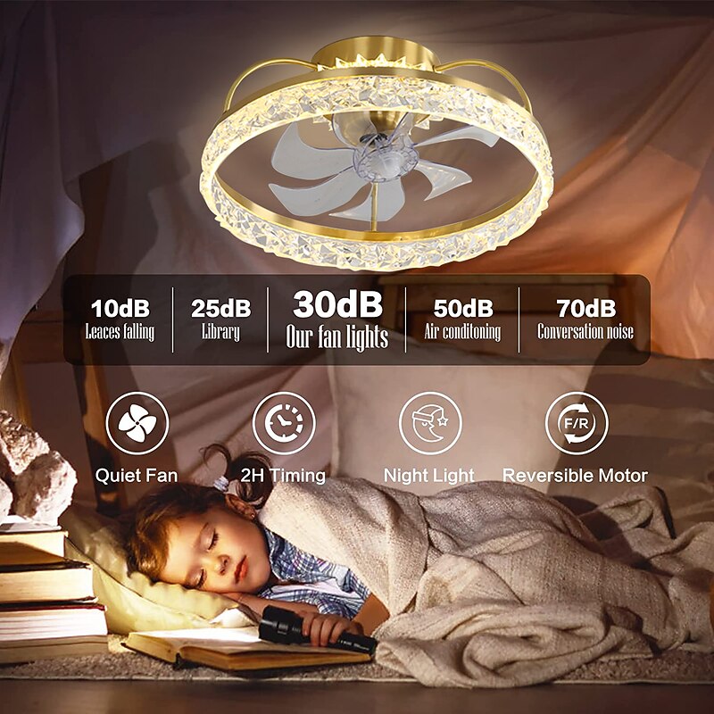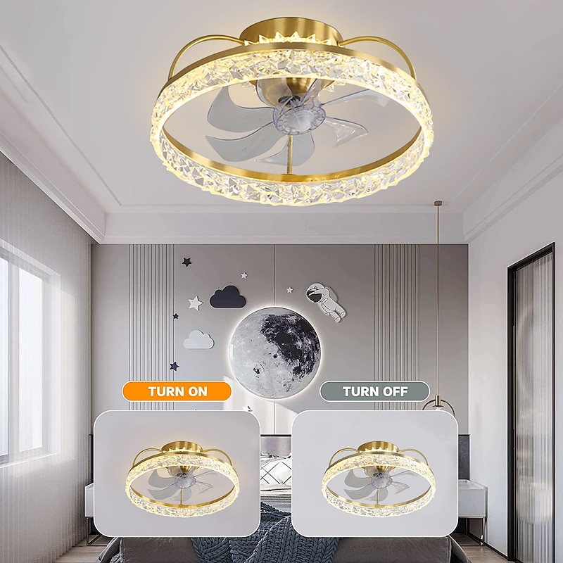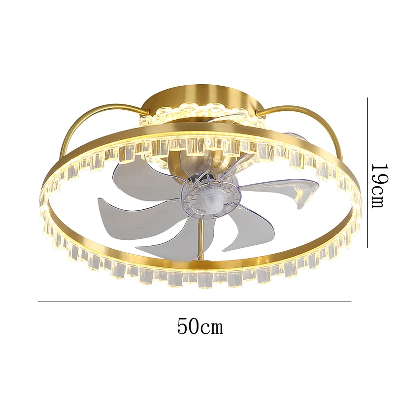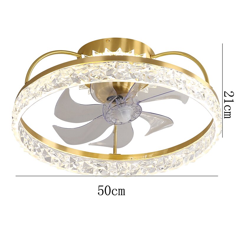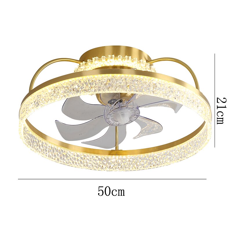 HOT ! Ceiling Fan with Light Dimmable Circle Design Crystal 50cm 6 Wind Speeds Modern Ceiling Fan for Bedroom, Living Room App & Remote Control 110-240V