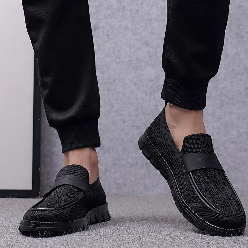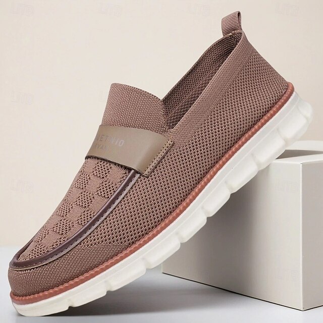 HOT ! Men's Brown Flyknit Loafers with Comfort Sole, Casual Slip-On Shoes for Business Casual, Travel and Daily Outfits