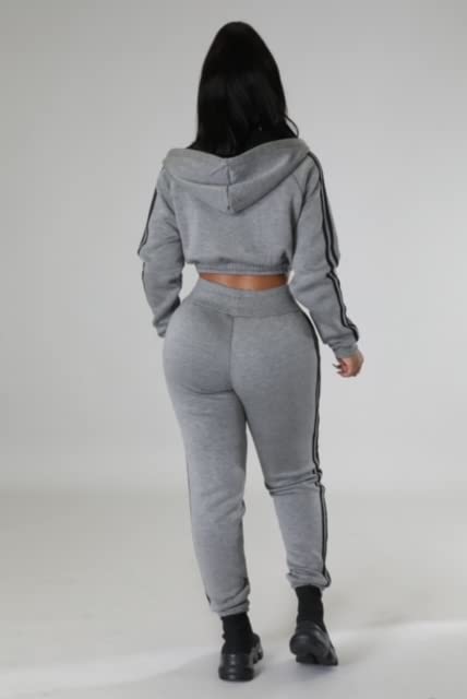 More information about Women's Casusal Two Peice Tracksuit Set With Stripes, Crop Jacket, Ankle Control, Drawstring Pants