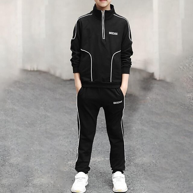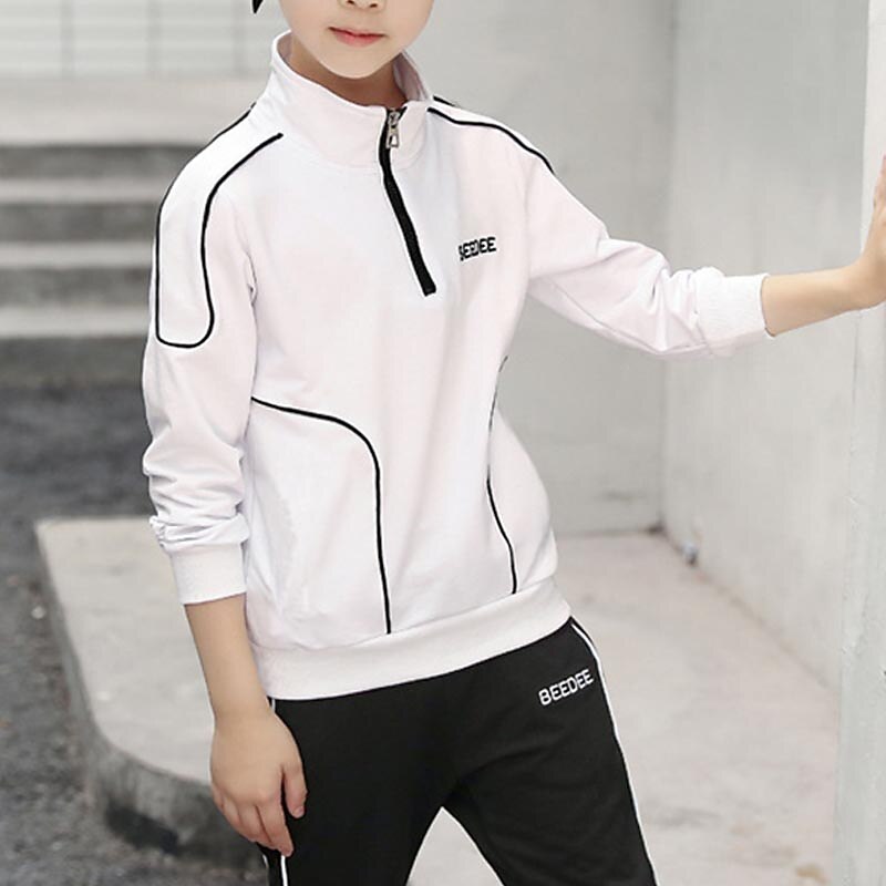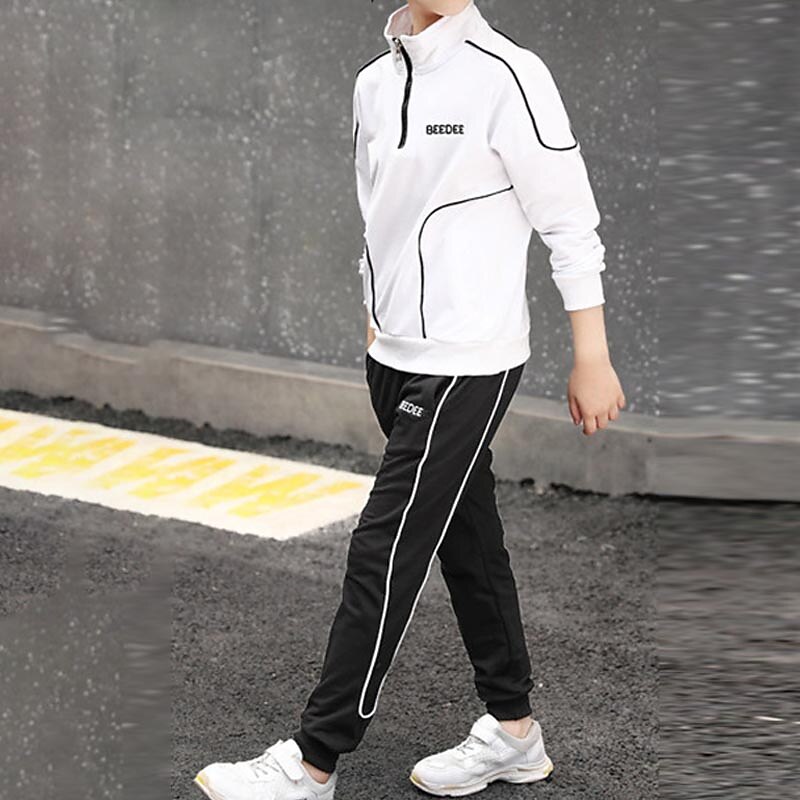 More information about 2 Pieces Sets Kids Boys Tracksuits Outfit Letter Stripe Long Sleeve Zipper Set Sports Daily Fall Winter 7-13 Years White