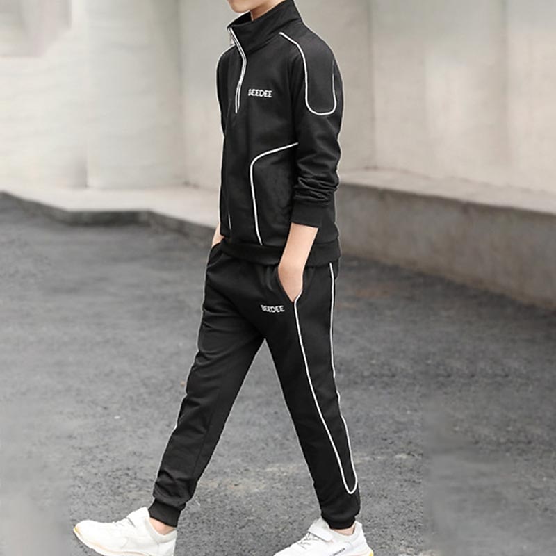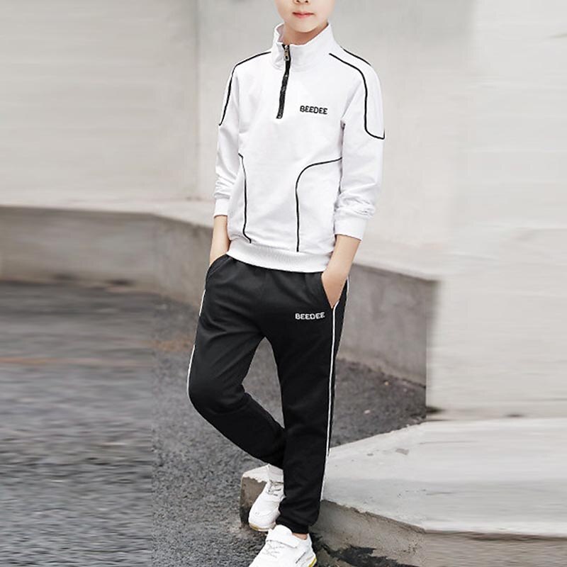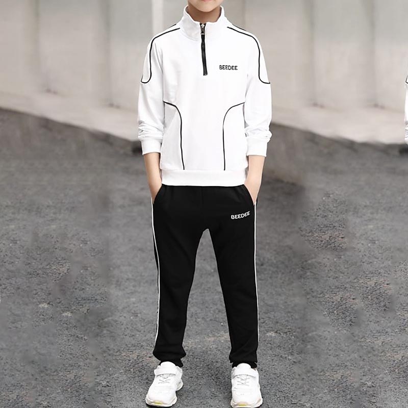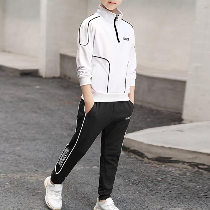 HOT ! 2 Pieces Sets Kids Boys Tracksuits Outfit Letter Stripe Long Sleeve Zipper Set Sports Daily Fall Winter 7-13 Years White