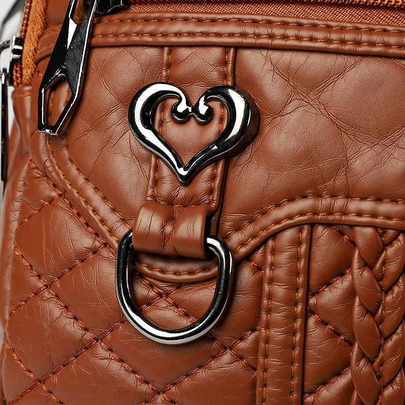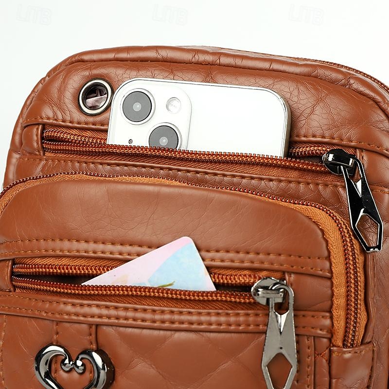 Fashionable Brown Quilted Crossbody Bag for Women – Stylish Faux Leather Shoulder Bag with Heart-Shaped Zipper Pull and Multiple Pockets 17