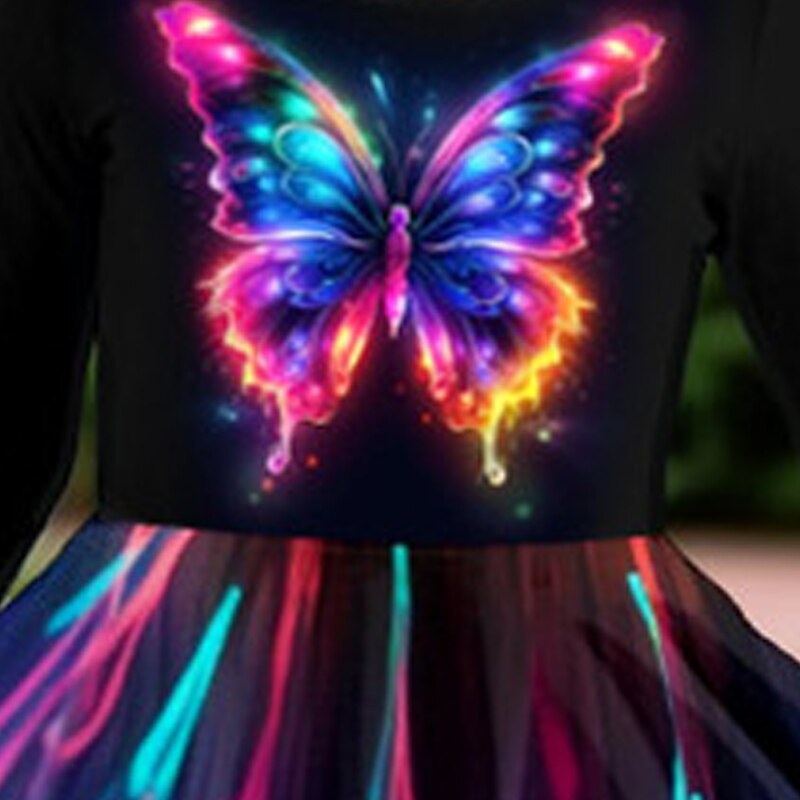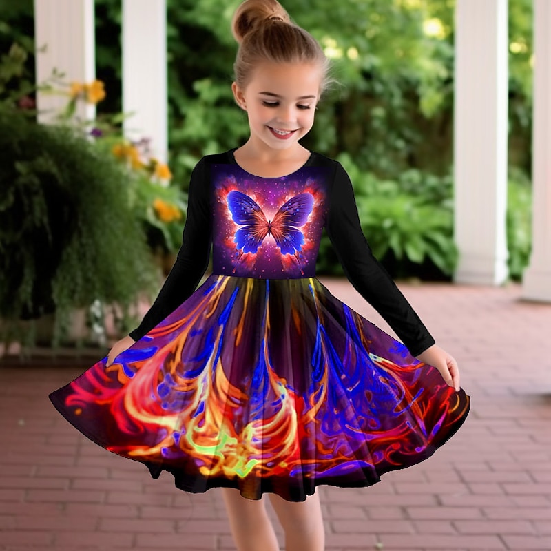 More information about Girls' 3D Butterfly Dress Long Sleeve 3D Print Spring Fall Vacation Sports & Outdoor Daily Cute Casual Beautiful Kids 3-12 Years Casual Dress A Line Dress Above Knee Regular Fit