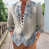More information about Men's Floral Print Ethnic Flowers Shirt Stand Collar Shirt Long Sleeve Vintage Retro Vacation Daily Wear Going out Spring Fall Mandarin Collar Band Collar Button-Down Linen Like Shirt Gray