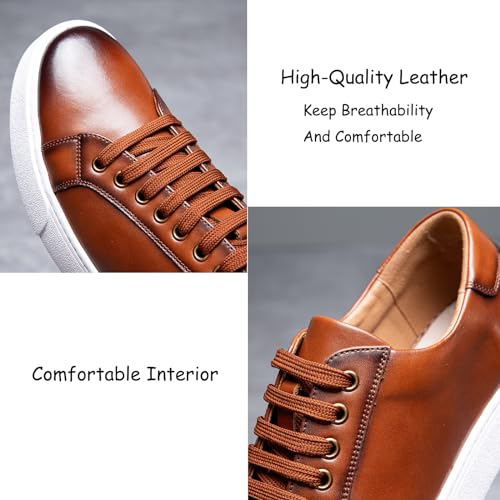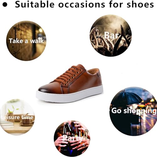 • MATERIAL: The casual sneakers use high-quality leather , rich texture on the upper to keep breathability and comfortable, which gives you different dress experience.Soft and flexible rubber outsoles suitable to walk for extended periods.