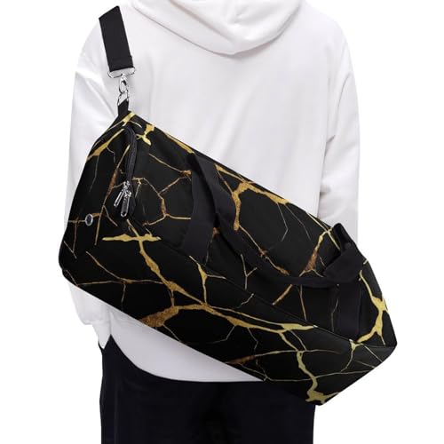 Large Overnight Luggage Bag Travel Weekender Duffle Bag Sport Beach Yoga Bags Black Marble Gold Texture 1