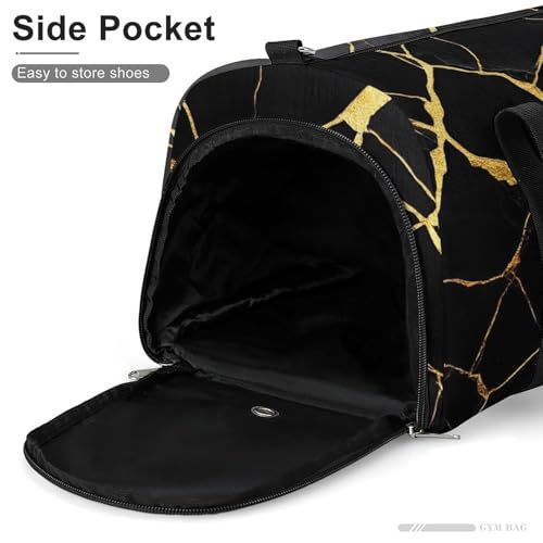 Large Overnight Luggage Bag Travel Weekender Duffle Bag Sport Beach Yoga Bags Black Marble Gold Texture 4