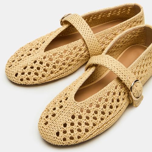 More information about Woven Mesh Ballet Flats for Women with Metal Buckle Strap Mesh Raffia Flats Round Toe Mary Janes Comfortable Ballerina Flat Shoes.