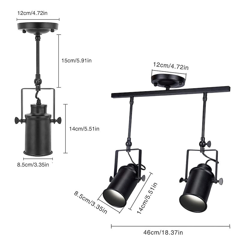 LED Ceiling Spotlight Retro Vintage Ceiling lights E27 Downlight, 2-lights Round Design Black Iron Lampshade, Rotatable Adjustable Industrial Wind Spotlights 11