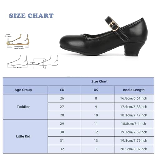 • CLASSIC AND FASHIONABLE: Our kids heels with simple but classic elegance design, perfect for party or daily wear. The classic round toe design also won't squeeze your child's toes, let them dance and whirl with elegance