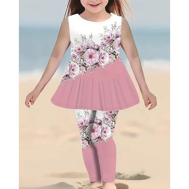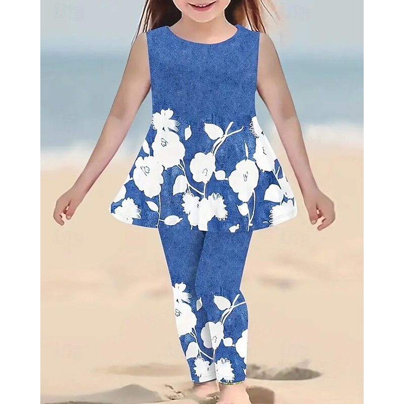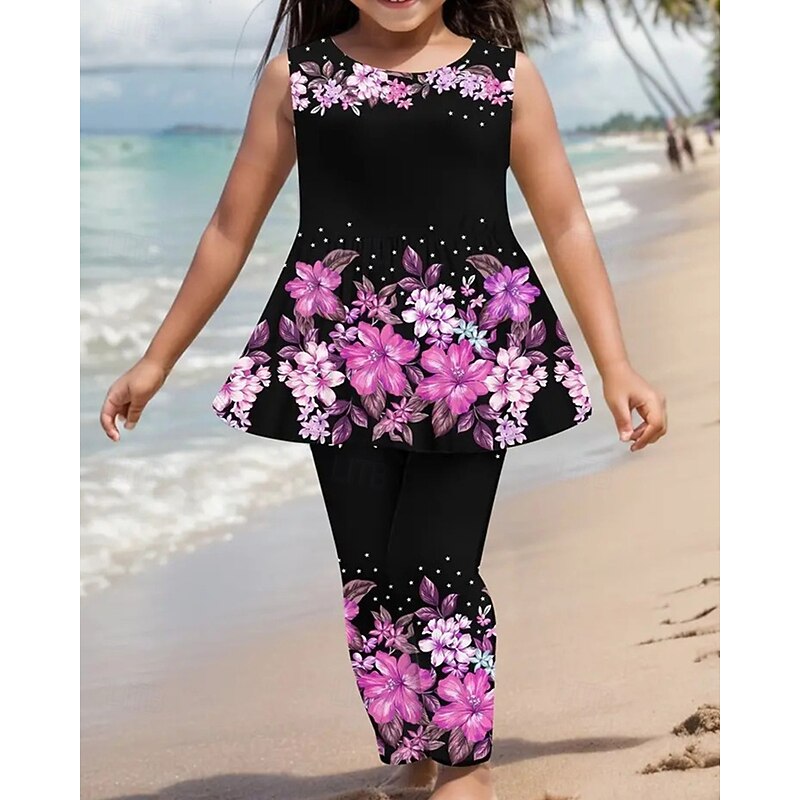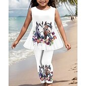 More information about Girls' 3D Graphic Tank & Pants Sleeveless Summer Spring Sports Fashion Daily Kids 4 years+ Crew Neck Outdoor Vacation Tailored Fit