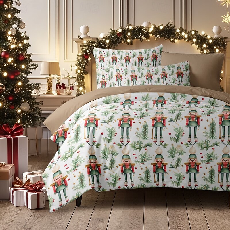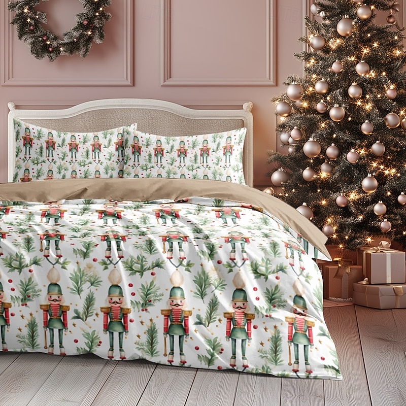 HOT ! Christmas Duvet Cover Set Queen King Size with Nutcracker Design 100% Cotton Festive Holiday Bedding Includes Duvet Cover and Pillowcases Cozy and Stylish for Seasonal Bedroom Decor