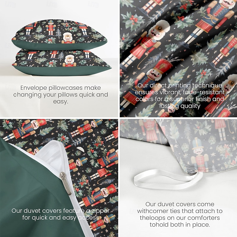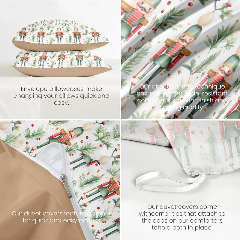 Christmas Duvet Cover Set Queen King Size with Nutcracker Design 100% Cotton Festive Holiday Bedding Includes Duvet Cover and Pillowcases Cozy and Stylish for Seasonal Bedroom Decor 8