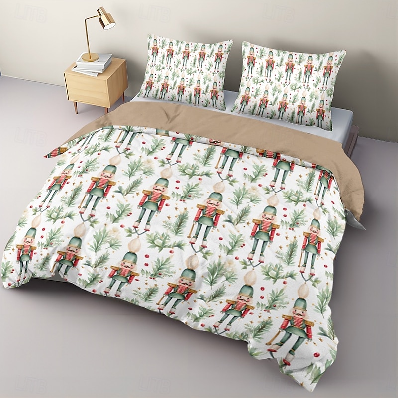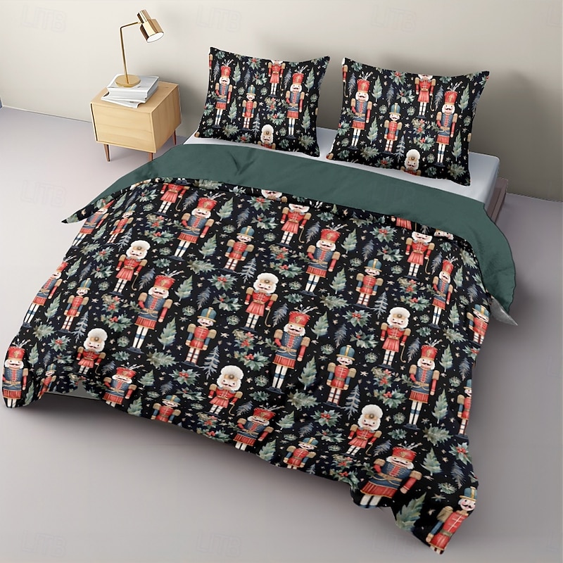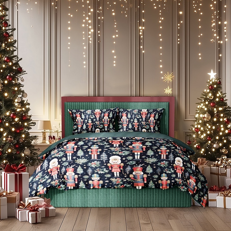 Christmas Duvet Cover Set Queen King Size with Nutcracker Design 100% Cotton Festive Holiday Bedding Includes Duvet Cover and Pillowcases Cozy and Stylish for Seasonal Bedroom Decor 13