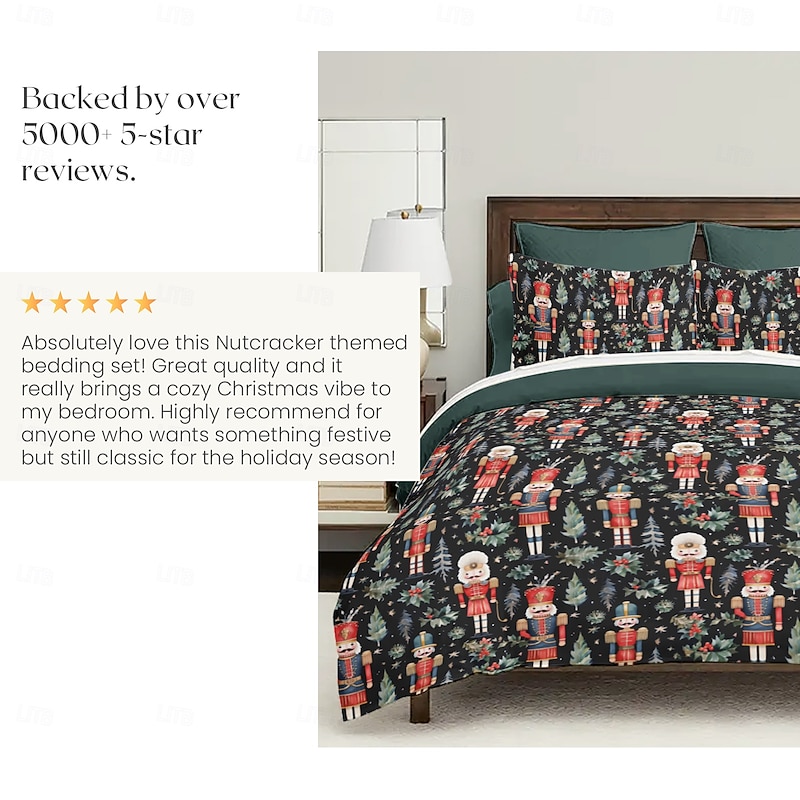 Christmas Duvet Cover Set Queen King Size with Nutcracker Design 100% Cotton Festive Holiday Bedding Includes Duvet Cover and Pillowcases Cozy and Stylish for Seasonal Bedroom Decor 15