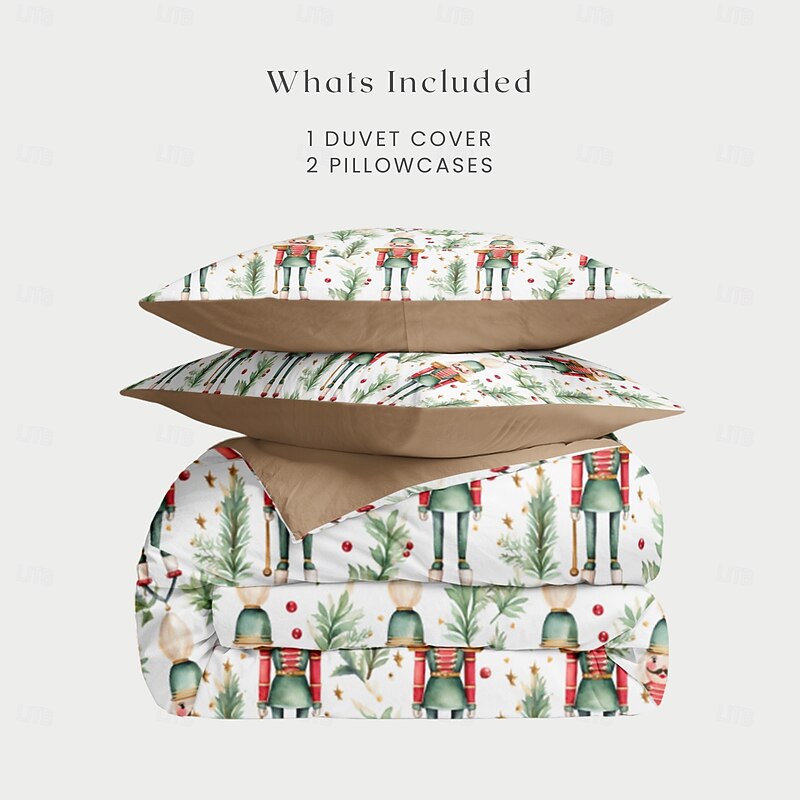 Christmas Duvet Cover Set Queen King Size with Nutcracker Design 100% Cotton Festive Holiday Bedding Includes Duvet Cover and Pillowcases Cozy and Stylish for Seasonal Bedroom Decor 1