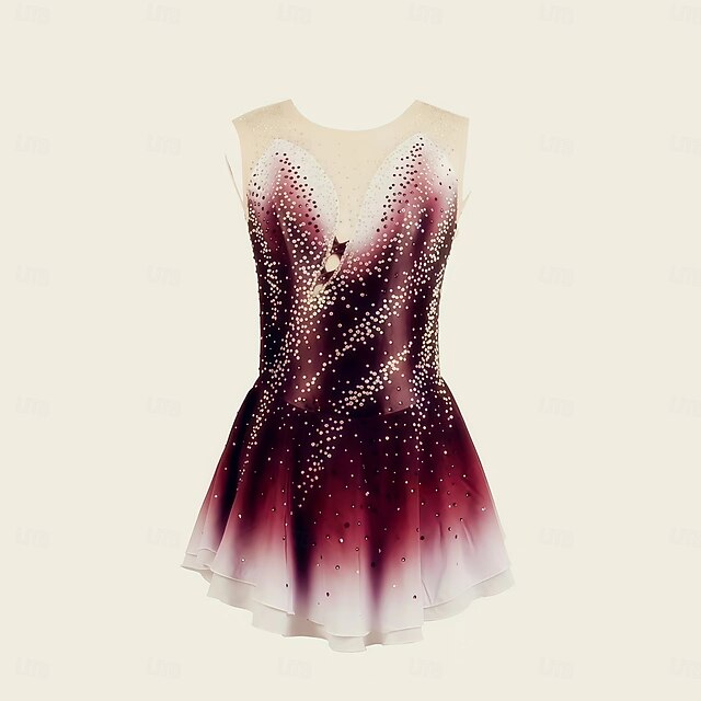 More information about Figure Skating Dress Women's Girls' Ice Skating Dress Burgundy Dark Blue Halo Dyeing Mesh Spandex Stretchy Training Practice Professional Skating Wear Thermal Warm Classic Crystal / Rhinestone