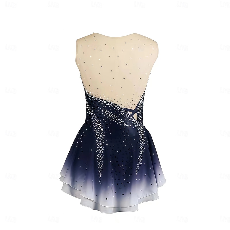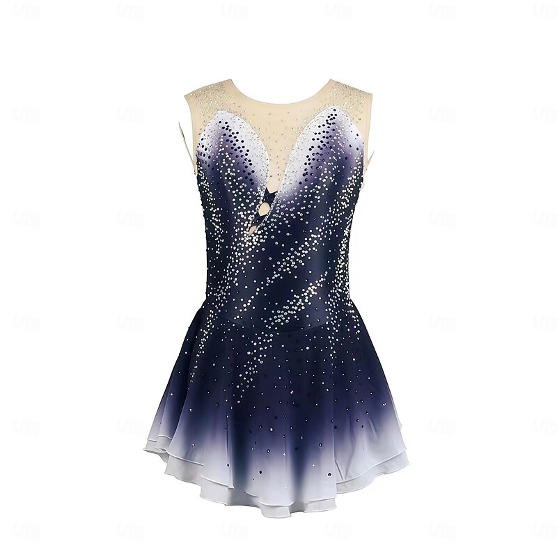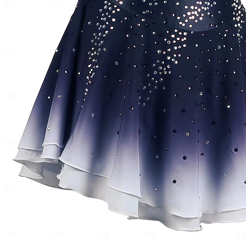 Figure Skating Dress Women's Girls' Ice Skating Dress Burgundy Dark Blue Halo Dyeing Mesh Spandex Stretchy Training Practice Professional Skating Wear Thermal Warm Classic Crystal / Rhinestone 2