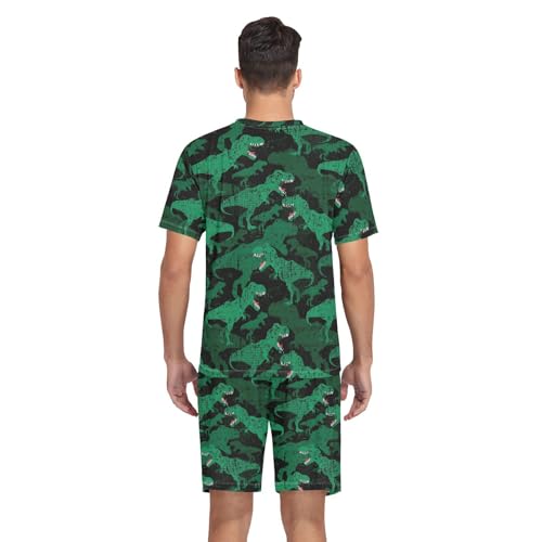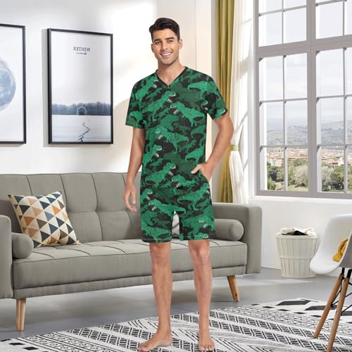 Men's Short Sleeve Pajama Set Dinosaur Green Summer Pjs Set 2 Piece Loungewear Sleepwear with Pockets 1