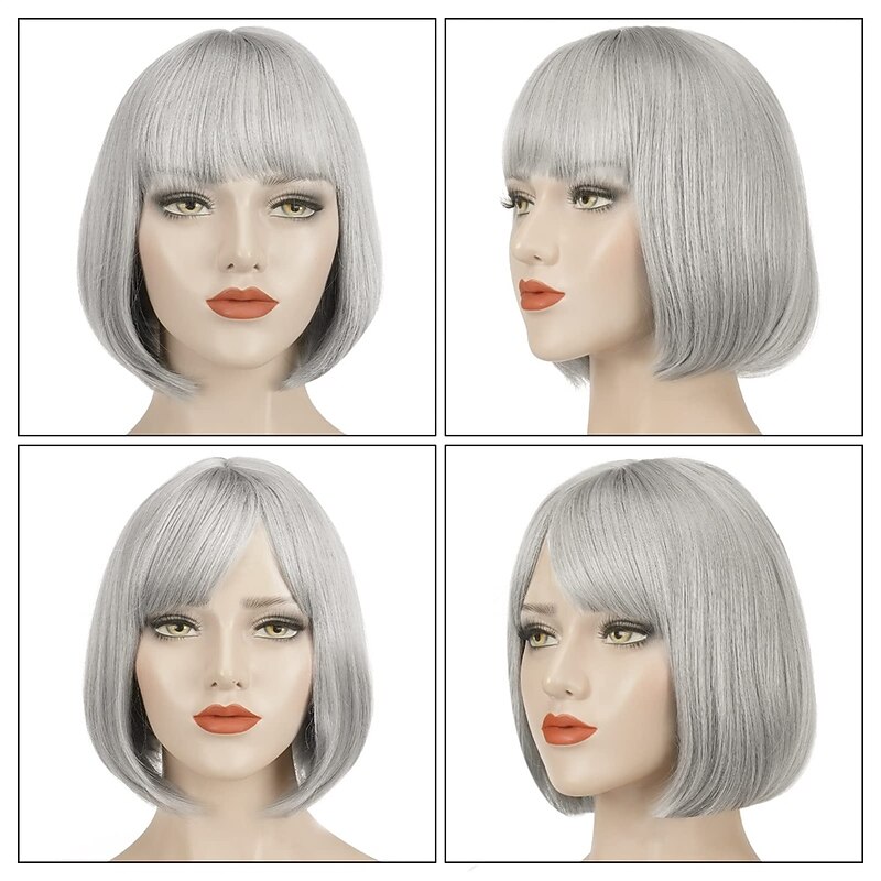 $16.49 - Short Straight Bob Wigs 11 inch Synthetic with Bangs Daily Party Cosplay Hair Wig for Black Women silver gray 2025. Shop for cheap Black & African Wigs online? Buy at lightinthebox.com on sale today!
