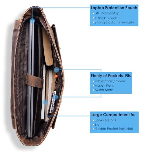 • Premium Leather & Accessories - Our messenger bag for men is made with genuine leather and best quality zippers and closures. This messenger bag for women is great for everyday use and fits a 16 inch laptop.