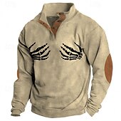 Men's Sweatshirt Black Navy Blue Khaki Standing Collar Graphic Skull Print Daily Holiday Going out Polyester Streetwear Casual Fall Winter Clothing Apparel Hoodies Sweatshirts  Long Sleeve 1