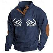 More information about Men's Sweatshirt Black Navy Blue Khaki Standing Collar Graphic Skull Print Daily Holiday Going out Polyester Streetwear Casual Fall Winter Clothing Apparel Hoodies Sweatshirts Long Sleeve