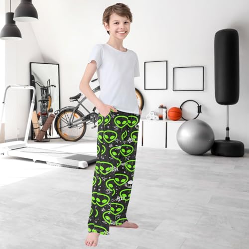 Boy's Pants Alien Neon Head Black Pattern Jogger Pants Elastic Waist Long Bottoms Trousers with Pockets 6-14 Years 6