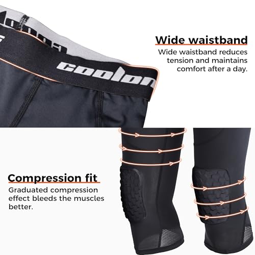 HOT ! COOLOMG Men Basketball Leggings with Knee Pads Capri Padded Compression Pants Athletic Tights