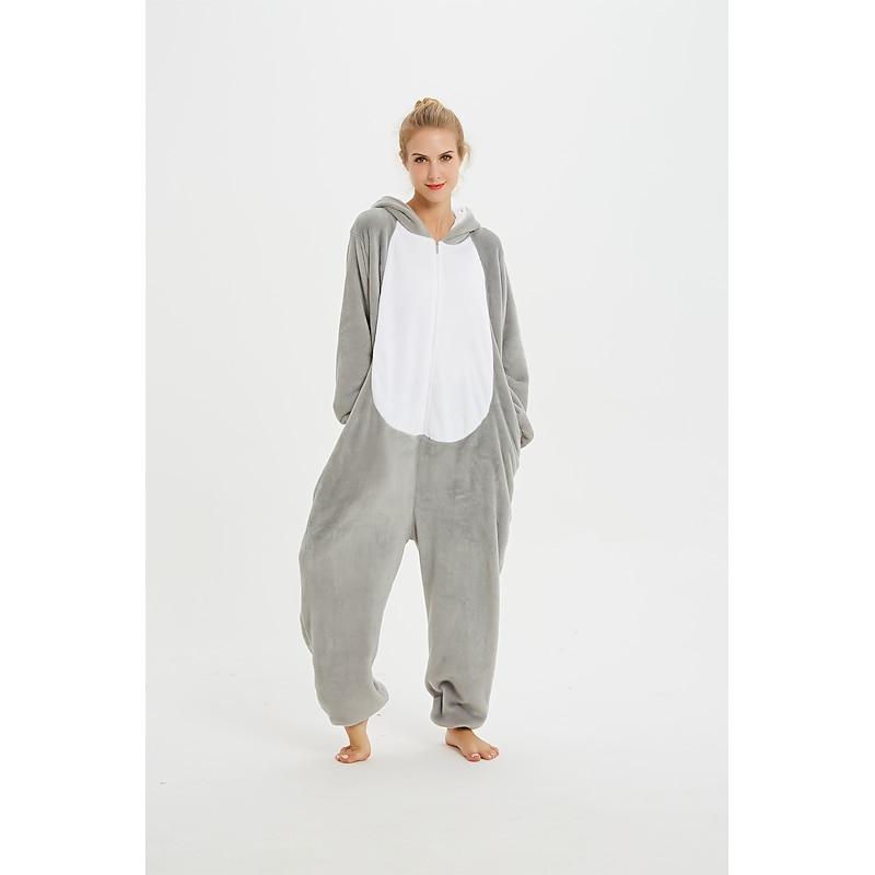 Featuring an adorable hood with floppy rabbit ears, this onesie adds a playful touch to your loungewear or costume collection. The grey and white color block pattern is reminiscent of a charming bunny, enhancing the whimsical and cute appeal perfect for festive occasions.